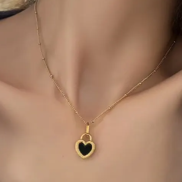 Experience elegance with LYLA's 2 Piece Double Sided Set in Black and White. This one-of-a-kind necklace and earring set features an elaborate heart design, with a dainty chain and high polished 18K gold finish. The double sided heart showcases a black onyx face on one side and white on the other, adding sophistication and charm to any ensemble. Elevate your style with this versatile and stunning matching set.